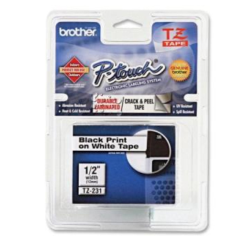 Fita Gravação 12mmx8mts Branco/ Preto Super Adesiva P-Touch