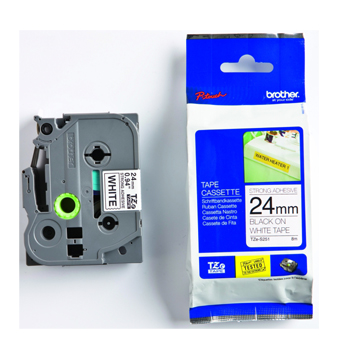 Fita Gravação 24mmx8mts Branco/ Preto Super Adesiva P-Touch