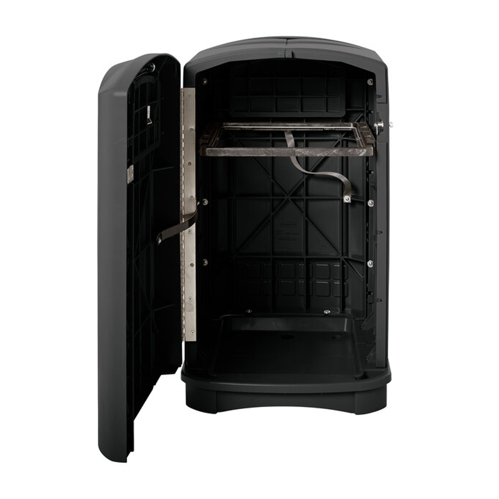 A porta de abertura lateral facilita o esvaziamento sem esforço físico excessivo, enquanto o mecanismo com molas oculta os resíduos, retém odores e impede a entrada de pragas.