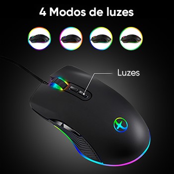 Rato óptico LED 3200dpi com fio gaming para PC ou portátil e 4 modos RGB