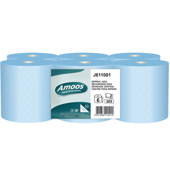 Rolo Toalha Mãos Folha Dupla 19,2cmx100mts AMOOS Picotado Azul